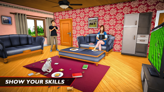 欢迎来到虚拟日常家庭模拟器!您将体验虚拟大城市的简单生活!游戏通过展示我们有趣的游戏玩法为您打造一个新的租赁游戏趋势,您可以在其中扮演家庭成员来执行不同的任务。扮演一个虚拟的母亲,在老家的厨房里为您可爱的家庭烹制美味的食物。为您的孩子提供早餐,并与您的丈夫坐在餐桌上。