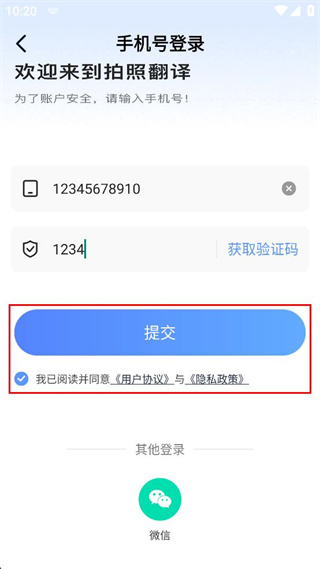 4、勾选“我已阅读并同意”相关选项,再点击下方的提交按钮完成登录操作。