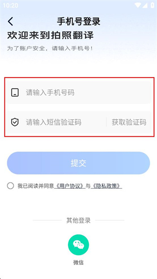 3、在手机号登录界面,依次填写手机号码和对应的短信验证码。