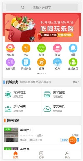 2、以便民菜市场、本地商城、配送到家为民生服务,以跑腿、美食外送等为便民特色服务,
