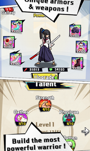 4、为了防止单调,人物每次升级可以在3项升级中任选一样,效果包括“变身技”、“剑斩”、“火剑”、“剑气”又或者是其他类等等。