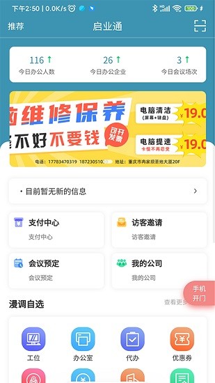 启业通是由重庆启业大数据有限公司开发,为解决科技孵化器、入驻企业、各级主管部门不同需求而推出的智能孵化管理服务平台。她有效的解决了孵化器在营销推广、招商入驻、服务扭转、财务结算、智慧办公、痕迹数据收集、空间可视化、服务可视化等问题,让招商更容易,管理更智能,服务更高效。她也解决了入驻企业在交互,信用沉淀,业务开展,政策申报,金融等方面的现实问题。同时让政府主管部门能够实时掌握辖区中小企业各种真实信息,推出更加有效的促进科学创业高质量发展的方法和措施。随着版本的不断升级,我们相信启业通能越来越受到大家的喜欢。
