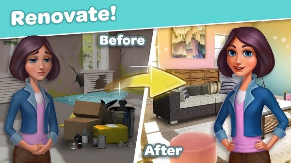 -- 消除赢得奖励,有许多不同风格的家具和道具可供选择和搭配。