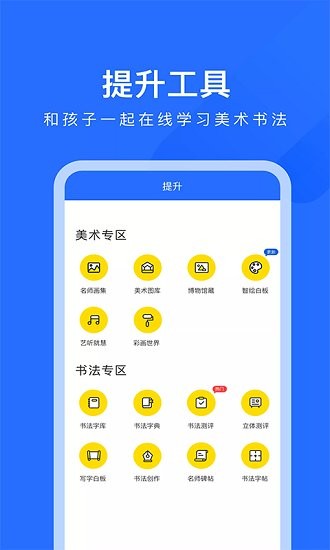 名师画集、美术图库、博物馆藏、智绘白板等千元工具免费使用,学生随身携带的艺术工具,真正实现家校共育。