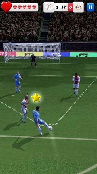 -- 正宗的装备和徽章为你带来终极的足球体验!熟练的使用高超的技术,找到更准确的角度来完成射门。