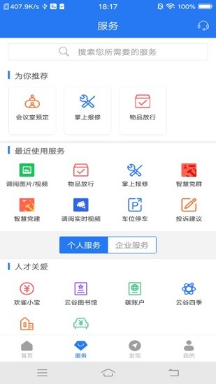 企业可以在应用中享受到优质的服务,可查看会议室并可以预订。