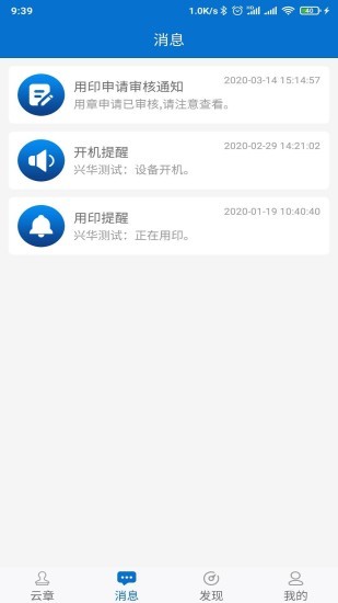 云章软件安卓版可以进行用章安全管理,支持在线申请用章,可以对云章进行监控和授权,软件里面有详细的操作指南、视频教程以及常见问题,可以智能设定用章时间,支持远程锁定,用印记录实时可查可追溯,欢迎感兴趣的朋友下载体验!