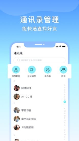 可以给你提供一个更加优质的聊天环境,让你聊天更加的有趣。包含单人聊天、群聊天,好友管理,群管理功能,收藏文字,视频,图片,发红包等方式实现更快捷的沟通。