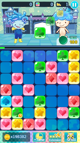 一个轻松可爱的消除游戏!最大的特征是新玩法:翻牌子系统