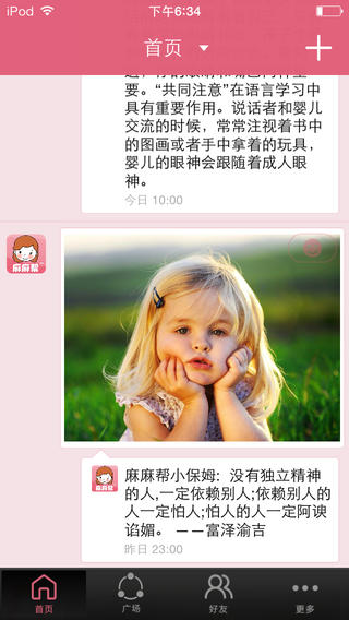 “育儿小贴士”- 会通过“麻麻帮小保姆”这个所有妈妈的默认好友,每天给用户发送“小保姆的微日记”,形式上更像是一条简短的图片微博,紧密结合了手机的碎片时间的使用特点,让妈妈们了解育儿知识。
