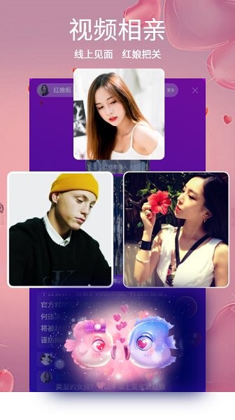 视频相亲:采用1红娘+1男嘉宾+1女嘉宾的真3人视频相亲模式,红娘视频帮你相亲,真实交友恋爱,避免尴尬专属相亲!