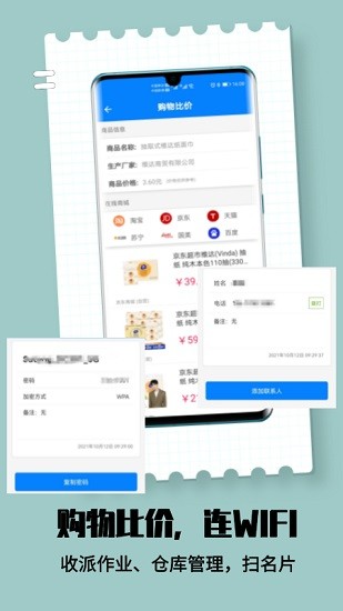3、支持扫码获取WIFI密码,添加联系人,打开链接,购物比价等等。