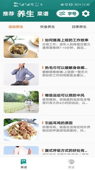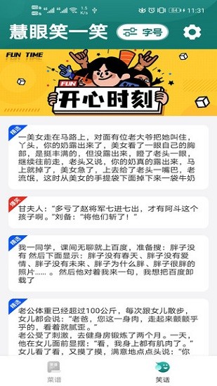 慧眼大字版软件是专为视力差的用户打造的大字版,特大号的字体让所有用户都可以轻松的观看软件之中的内容,软件之中拥有许多的菜谱和笑话可以在软件之中进行观看。