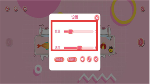 3、在设置界面中,可调节玩具的数量和速度滑块,设置完成后返回界面即可使用。