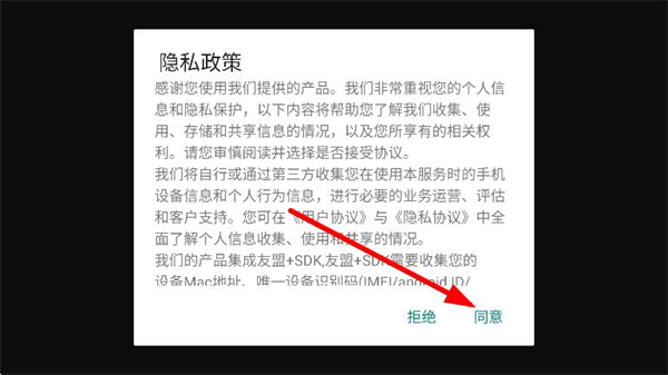 1、打开逗猫玩具app,在弹窗中,点击同意。