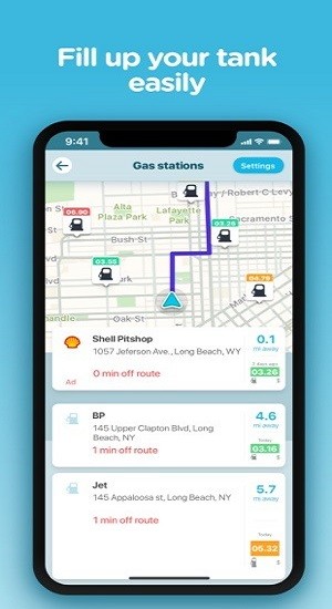 另外,你还可以手动报告事故、危险、警察以及其他你所看到的交通事件,为即将驶来的人提供警示。waze地图app还整理社区中分享的汽油价格,帮你找到沿途最近的加油站。