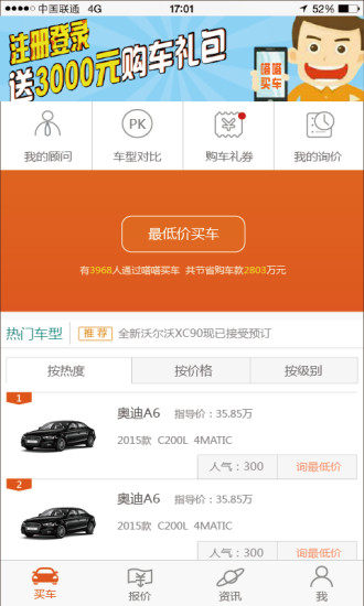 嗒嗒买车是一款生活服务类手机软件,这里含有最新的汽车资讯信息,最新车型上线第一时间知道,精选热门畅销车型,让你选择更多,还可以与专业的销售顾问一对一畅谈,让您轻松买到好车,喜爱的朋友赶快下载体验吧!