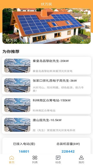 伏万民app官方版是一款集光伏电站监控、设备报修以及光伏扶贫等功能于一体的手机软件。用户可以通过这个程序在线监控电站收益数据,及时发现设备安全隐患问题,可以清楚的了解每一个电站运行状态!同时也为团队带来了高效办公服务!