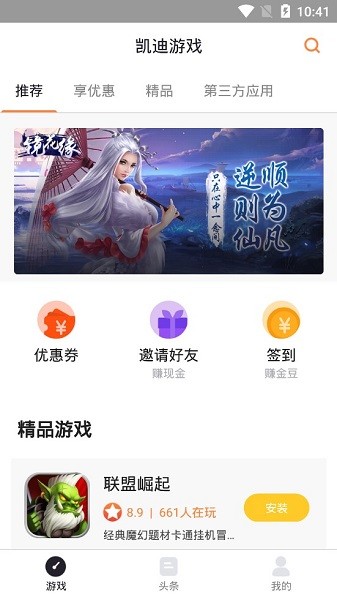 凯迪游戏平台汇聚了大量精彩玩法的游戏资源,类型丰富多样,分类清晰,可以一键查找,快速下载安装,痛快体验,还有各种游戏资讯和新闻内容可以查看了解,更提供福利优惠不同错过,做任务还可以赢取金豆,赚取红包奖励哦!