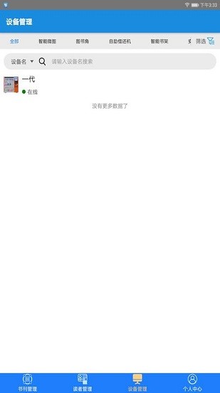 设备管理,可以根据图书角、自助借还机、智能书架等条件进行设备管理;