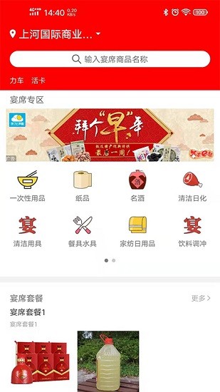 掌上优选app是一款让用户们能够快速购买到自己想要的宴席商品的手机购物软件,在这里用户们能够看到超多宴席上的商品,一次性用品、纸品、名酒、清洁日化、清洁用品、餐具水具、家纺日用平、饮料冲调、海鲜水产、水果蔬菜等等等等,让用户们能够享受到一站式购物的方便快捷,一次性购买齐宴会上要用的商品。