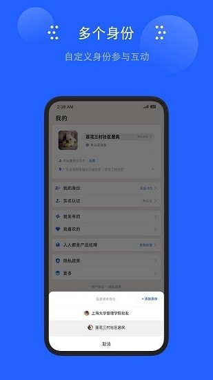 用户可以在软件内选择自己的地理位置以及职能,使用不同的身份在不同的地方发布动态、与人互动;