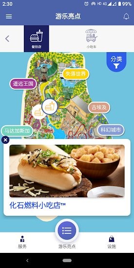 ·筛选功能让您能够基于个人喜好查询游乐设施,表演,餐饮和购物商店。