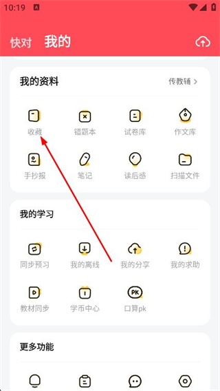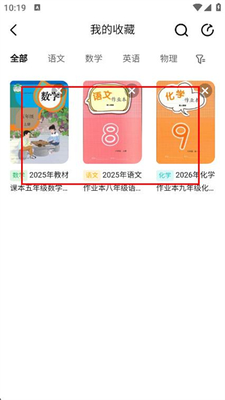 3、进入我的收藏页面后,即可查看已收藏的教材、作业本等内容。