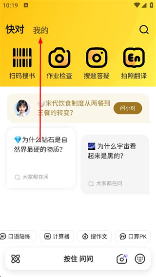 1、打开快对作业APP,点击页面顶部的我的,进入个人中心页面。