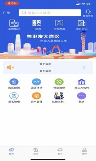 湾区双创APP, 提供粤港澳大湾区(广东)创新创业孵化基地园区移动办公服务,实现企业入驻、行政办公、园区服务等业务管理服务。