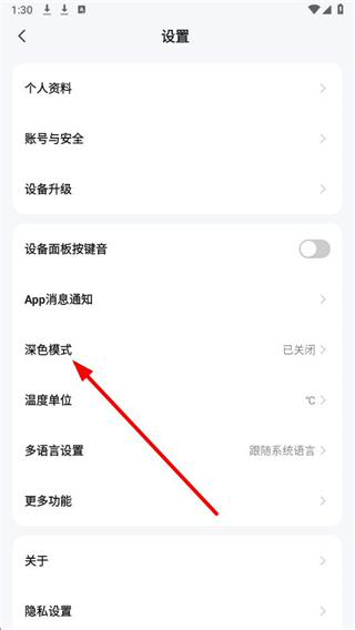 3、在设置界面中,找到深色模式选项并点击,进入其具体设置页面。