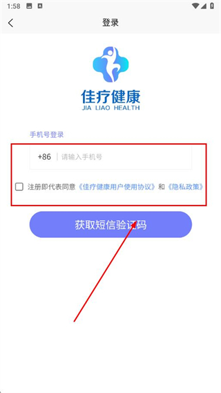 3、输入手机号,勾选用户协议和隐私政策,点击获取短信验证码。