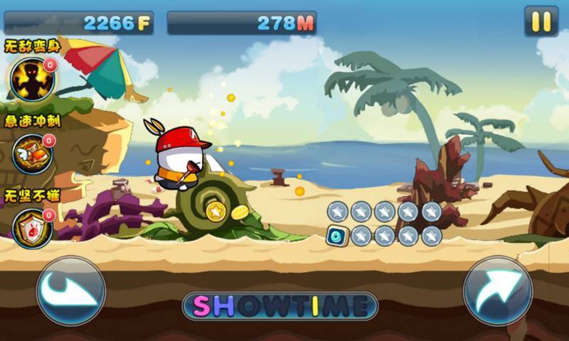 合理使用道具也是冲榜的一个关键。游戏中可购买使用的道具有无敌药水(一段时间内无敌状态)、冲刺飞行(一段时间内在空中飞行,冲破障碍物和吸取金币水果)和护盾(抵挡一次伤害),在危急关头可以合理使用道具,确保自己渡过难关冲击更高得分。