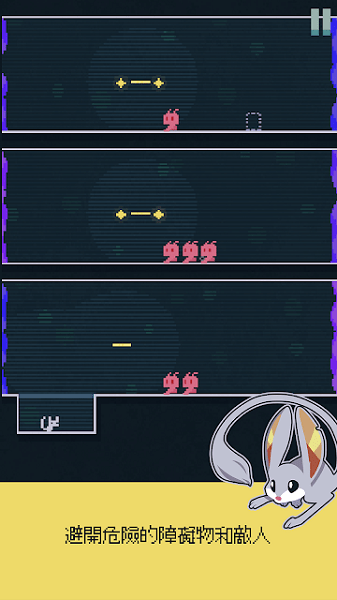 什么是跳鼠?它们是可以真正跳跃的沙漠啮齿动物。你生命中的大部分时间被困在笼子里,是时候在跳鼠中摆脱困境并面对逆境了,这是一款无情、极简的一键式微型平台游戏。你会一次又一次地失败,但最终的自由是值得的......对吧?跳跳鼠充满了具有挑战性的微型关卡。扮演跳鼠,其必须逃离充满无数死亡陷阱的设施。