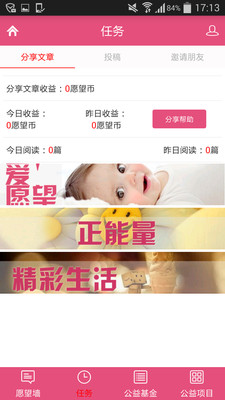 每天一分钟,阅读公益资讯,分享公益内容,即可为公益项目筹得公益基金。