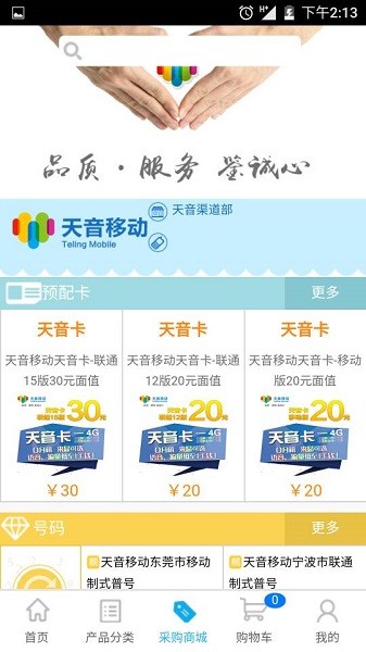 1、提供天音移动各级代理及渠道网点在线交易的平台;