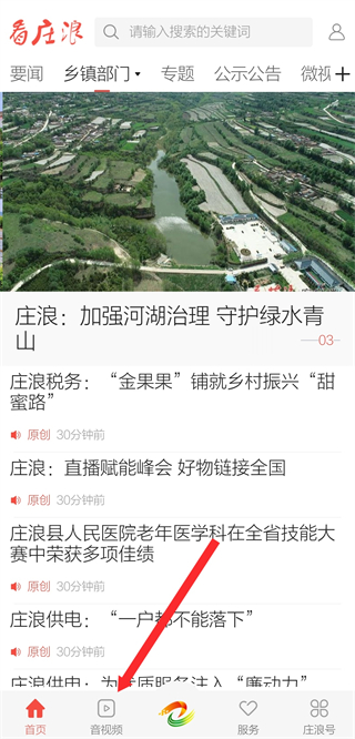 1、打开看庄浪app,点击底部音视频,进入音视频的页面。