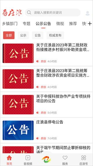 看庄浪客户端app主要为用户提供本地新闻资讯服务,用户通过平台既能了解国家政策与各类时事热点,也能深入知晓本地新鲜事、全方位掌握本地热点动态,无需额外渠道就能获取多元资讯,它充分满足大家对本地及全国重要信息的获取需求,有资讯查询或关注本地动态需求的用户,不妨下载体验试试。