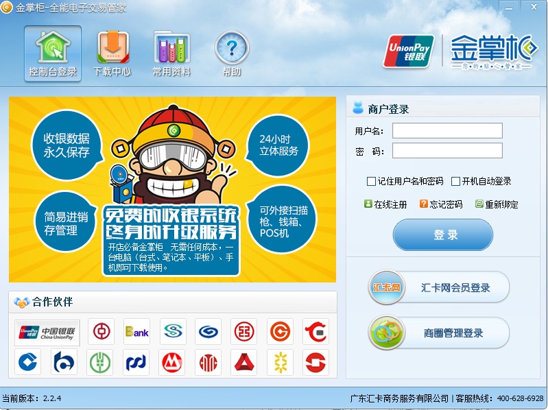金掌柜软件是一款由汇卡商务服务推出的全能电子交易管理软件,该软件适用于餐饮、服装,建材连锁商户使用,金掌柜管理软件+pos支付终端+移动app三位一体,为您带来便捷的服务。