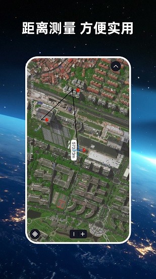 航路地球横版界面创新,可以看当前卫星地图位置的经纬度和比例尺。操作上通过按钮放大缩小,指南针矫正正北方向。还有测距功能帮助查看路线距离。搜索并选择地址能体验到飞行一般的感受,点击街景即可展示当前位置实景地图。