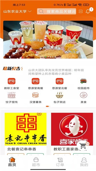 会自动定位,根据用户的所在位置分析学校,推送附近的各种美食和商品;
