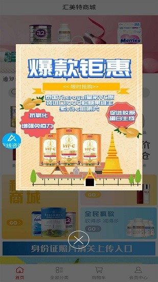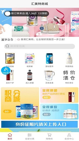 香港汇美特是非常便捷的母婴全球购商城手机app,在这里用户们能够找到超多的全球母婴商品进行选购,奶粉、纸尿裤、婴幼营养、孕婴个护、母婴美妆、成人保健、百货美食、宝宝玩具等等等等让家里有宝宝的用户们能够在这里更快的找到自己需要的商品进行购买,还有购物活动能够省钱哟。