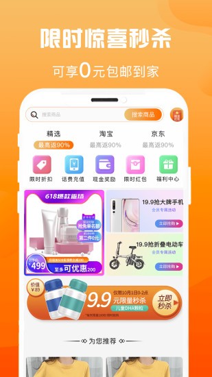 3、购物返利:通过惠好省去淘宝、京东、天猫等平台购买的产品,都可以获得返利,最高返90%。