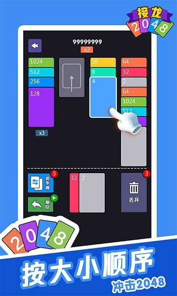 接龙2048游戏和空当接龙玩法类似的2048手游,通过把纸牌来进行有序合并从而完成闯关,简单的点击操作就能快速参与其中,游戏具有一定的挑战性,适合用来打发时间、娱乐消遣,感兴趣的朋友不要错过啦!