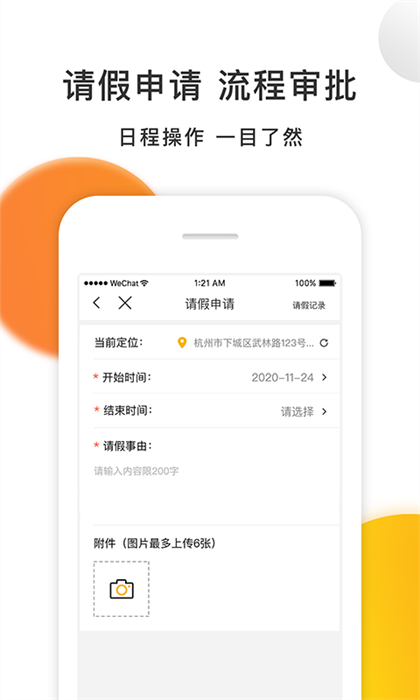 4、提供考勤记录工具,每次上下班的时候都可以使用app记录日常考勤;