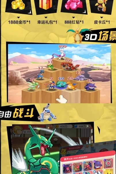 绿宝石之战这款游戏包含了很多不同的小精灵造型设计,通过每一次的竞技对抗挑战,玩家们可以获得超多的道具奖励,同时还会有很多酷炫的战斗场景等你来解锁。