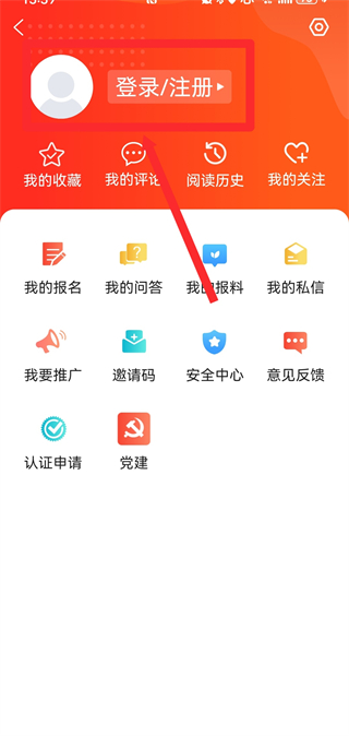 2、在个人页面,点击登录/注册入口,进入登录注册选择界面。