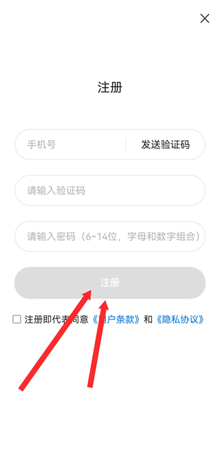 4、在填写页面依次输入手机号等信息后点击注册,完成账号注册操作。