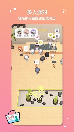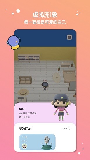 缓缓星球是温暖的网络虚拟社交空间,玩家可以自定义一个可爱的卡通形象进入社区,和大家一起漫聊互动,丰富的空间等待大家探索,还有多人派对模式,拉进大家的距离。丰富的玩法后续也将不断上线,赶紧下载缓缓星球app和大家一起享受生活吧。