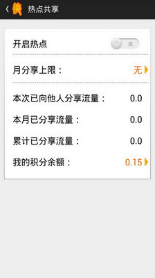 需要安卓用户A在开启电信运营商数据业务后,点击“分享我的流量”,同时,安卓用户B点击“查找周边热点”,选取自动开启,即可自动连接到A分享的热点上。这样A用不完的手机流量就可以给B用了,换取积分还可以出售给其他用户哦!